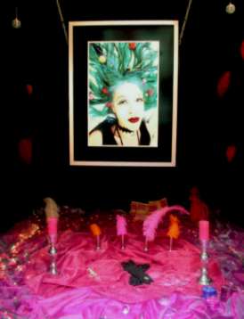 woensdag 3 november 2010 Persbericht Amsterdam Gallery Kortsluiting Doden Altaar 1 - 30 november 2010 El Dia de los muertos! De hele maand november is er in Kortsluiting een Mexicaans dodenaltaar te zien, gemaakt door de veelzijdige kunstenares Adelina Reyes. Het symboliseert de religieuze cultus van de dood van de Indianen in de precolumbiaanse tijd en de versmelting met de katholieke godsdienst, uitgebeeld door een offer-altaar, waar de dood zeker niet als het einde van het leven wordt gezien. De dodencultus is geen individuele aangelegenheid. Centraal staan het gemeenschappelijk belang en de continuïteit van de schepping. Het gaat hier om het welzijn van de aarde, niet om de redding van het individu. De gestorvenen verdwijnen om terug te keren naar de oorsprong, de dimensie waarin zij werden gecreëerd, om te versmelten met de lucht, het vuur en de aarde. Zij keren terug naar de essentie die het universum bezielt. Dit betekent niet dat de transitie zonder pijn is voor hen die aan deze zijde van de drempel achterblijven. Een groot deel van haar werk staat in het teken van het zogenaamde syncretisme, de versmelting van de precolumbiaanse en Spaanse cultuur. Dit uit zich onder andere in de intense, explosieve kleuren en het gebruik van symboliek. voor meer informatie..>>Kortsluiting meer ..>>Dagvandedoden